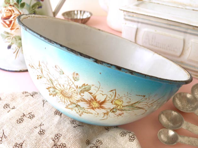 小物の収納に便利ですね。工夫次第でいろいろと楽しく使えそうなフランスホウロウアンティーク雑貨の