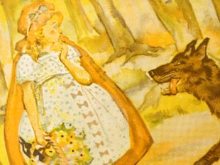 がらママから「赤ずきんちゃん」のお話を聞いている可愛い姿が想像で着そうな貴重な一品です。