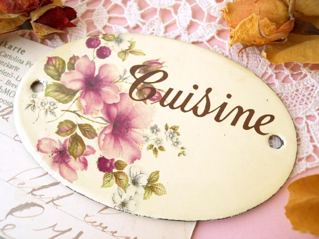 フランスでおそらく1940年代に製造されたホウロウ製のキュイズィーヌフルールプティプラックです。こち