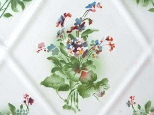 皿が受け止めてくれます。本体にはジオメトリックパターンのエンボスの中に可憐なヴィオレット(スミレ)の