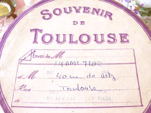 があり送り先のアドレスが書かれています。また、本体にはViolettes de Toulouse(トゥールーズのヴィオ