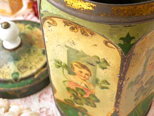 ル(グリーン)とイヴォアール(アイボリー)のボワット(ボックス)で、フタにはトレフル(クローバー)とMoka