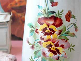 ションが美しいピシェ(ピッチャー)で、本体にはロゼとジョーヌ(イエロー)とボルドー(エンジ)で可愛いパンセ