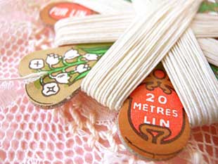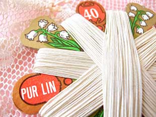 ルトに巻かれたイヴォアール(アイボリー)のランフィル(リネンスレッド)で、カルトには40 Pur Lin(ピュール