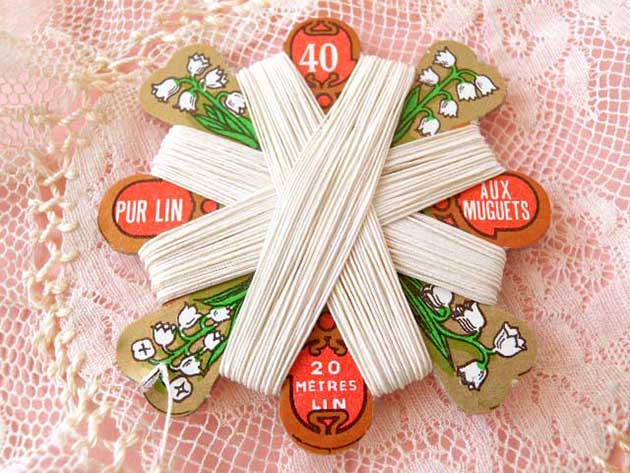 おそらく1930年代にフランスで製造されたデッドストックのカルト(カード)に巻かれたラン(リネン)製の ミュ