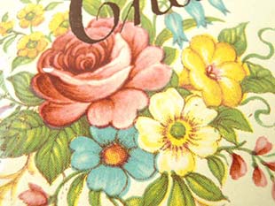 マン(ジャスミン)とカンパニュラ(キキョウ)とプリムラとスイートピーのお花がデザインされていてエレガン