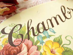 シヴ書体でChambreと書かれています。また、プラックにはハンドプリントされたおそらくローズとジャス