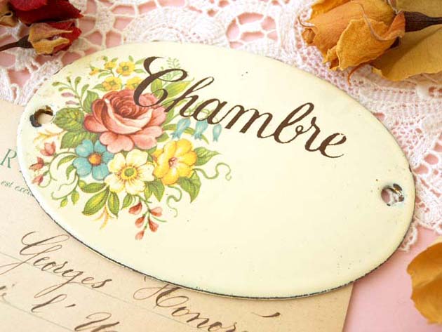 パリにあるゴードン社がおそらく1940年代に製造したホウロウ製のシャンブルフルールプティプラックです。