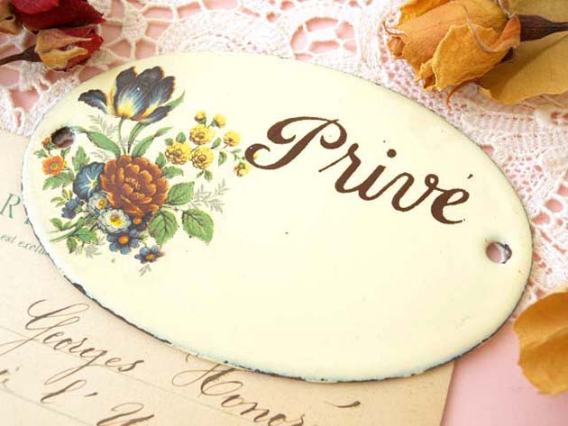 パリにあるゴードン社がおそらく1940年代に製造したホウロウ製のプリヴェフルールプティプラックです。