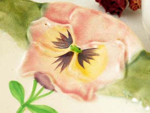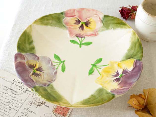 とポープル(パープル)のパンセ(パンジー)が立体的なレリーフで描かれていてオシャレで可愛くてとてもいい