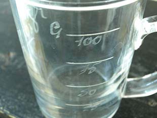 い目盛りがありg100、75、50、25と書かれていますが、医療用に飲むので温泉水はきちんと量って飲むよう