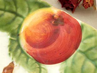 ののようです。イヴアール(アイボリー)の本体には、木に生って赤く色づいたペッシュ(桃)とヴェールムース