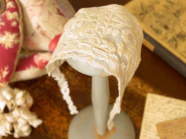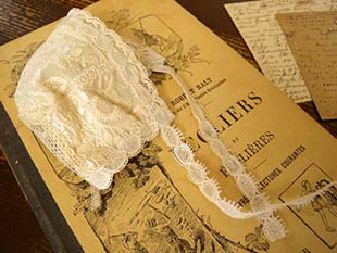 ね。また、結び紐もドンテル(レース)で作られていて、さすがにフランスらしい凝った作りです。小さなべべ