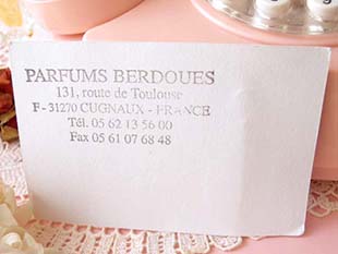 れているのもオシャレですね。台紙の裏面にはParfums Berdoues 131, route de Toulouse(トゥールーズ通り