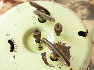 エッテ(ヒバリ)のように可愛いレヴェイユですね。背面のゼンマイの巻き上げレバーは右がムーブメント用で