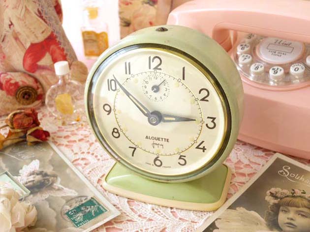 リーン)のレヴェイユ(アラームクロック)で、イヴォワール(アイボリー)のダイヤルには1から12までの黒いア