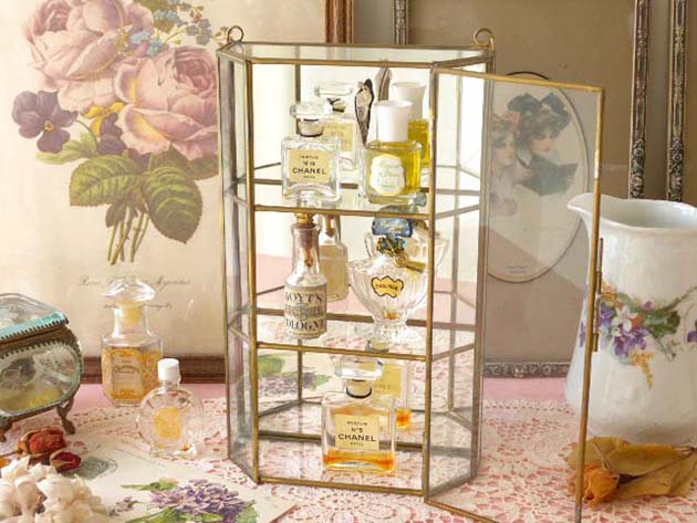 ファンフラコン(香水瓶)などを飾るとエレガントでオシャレでとてもいい感じです。また、扉には小さな取っ
