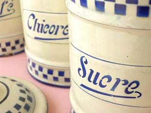 のカーシヴ書体で左からSucre(シュクレ/シュガー)、Cafe(カフェ/コーヒー)、Chicoree(チコリー)のロゴが