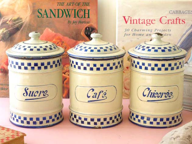 ■fr-a00753 Japy Freres ブルー&イヴォアールダミエキュイズィーヌポ3アンサンブル