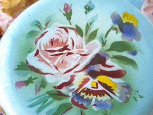 ヌ(イエロー)のパンセ(パンジー)のお花がデザインされています。また、底面には美しいロゼのローズとパン