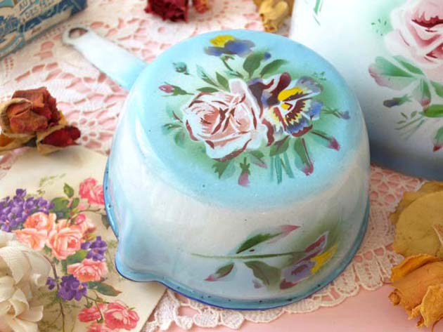 フランスのホウロウ製品は作りが良く80年の長い年月が経っても美しさは色褪せないですね。当時のフラン