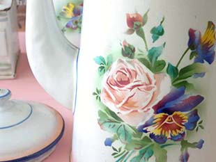 なってきていますが、ローズとパンセのお花と優しいロゼのオンブレのカフェティエールは、見ているだけ