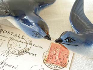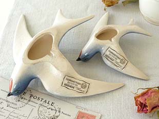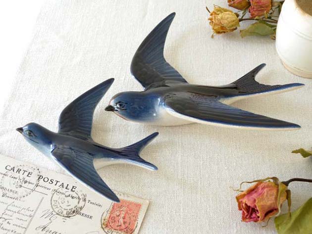 フォンセ(ダークブルー)に彩色されたイロンデール(ツバメ)のパラン&アンファン(親子)の壁掛け用のデコー