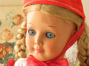ドイツにあるAJE社がおそらく1950年代に製造したセルロイド製のブロンドハールロートカピヒェンプッペ