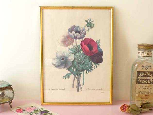 店がおそらく1960年代に額装した木製のオールカードル(ゴールドフレーム)に入ったアネモネボタニークパン