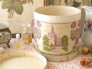 レットの花の配送用に制作されたカルトン製のフタ付きのボワットで、フタにはSouvenir de Toulouse