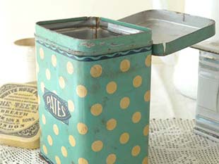 おそらく1930年代にフランスで製造されたトール(ティン)製のブルー&イヴォワールポワパッツボワットで
