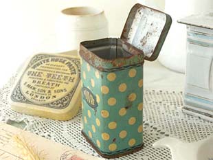 す。こちらは大変レアなブルー地にイヴォワール(アイボリー)のポワ(ポルカドット)模様のボワット(ボックス)