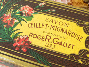 ワットで、フタと本体にはSavon(サボン) Oeillet Mignardise, Carnation(カーネーション) Roger & Gallet(ロ
