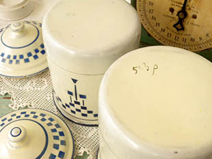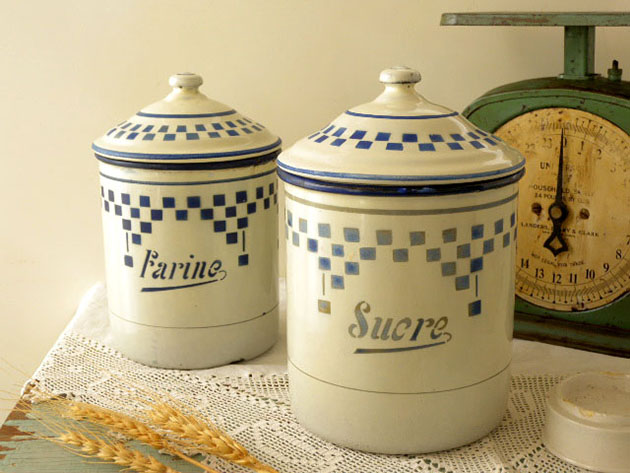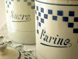 本体にはブルーフォンセのカーシヴ書体で左からSucre(シュクレ/シュガー)、Farine(ファリーヌ/小麦粉)の