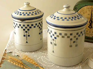 ■fr-a00846 Japy Freres ブルー&イヴォアールダミエキュイズィーヌポ2アンサンブル