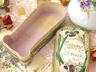 ていた厚紙製のフローラミェイリスパルファンフラコンボワットです。エル・テ・ピヴェール 社はサボント