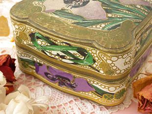 フォルムのボワットで、フタと本体にはポープル(パープル)のイリス(アヤメ)の花とドール(ゴールド)のアー