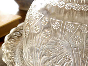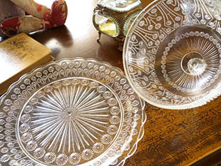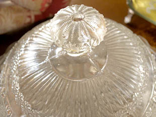 ルリー(ガラス器)で、取っ手の付いたクロッシュ(ベル)のようなクヴェルクル(フタ)とプラトー(トレイ)にはマ