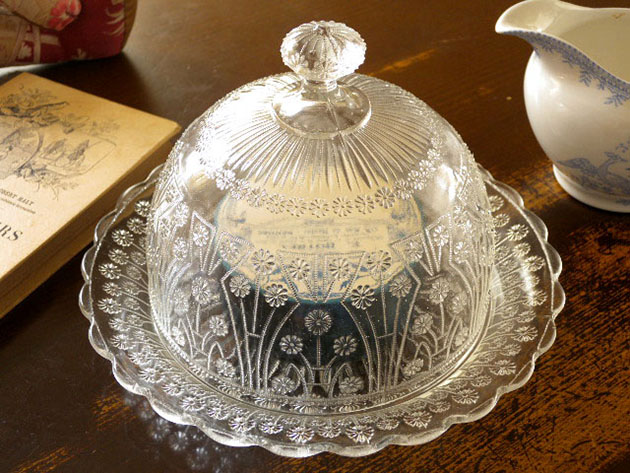 おそらく1900年代にフランスで製造されたガラス製のフルールルリエフクロッシュフロマージュヴェルリー