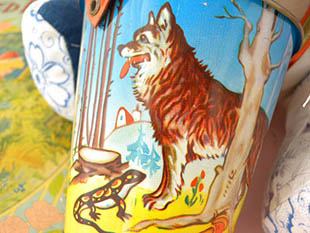 おばあさん家へ行く途中で親切そうな悪いオオカミに会っているイラストがデザインされていて可愛くてと
