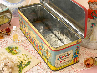 こちらは超レアなビスコット(ラスク)が入っていたフタがヒンジで開閉するボワット(ボックス)で、フタには