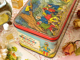 Biscottes(ビスコット)が入っていたエタン(ティン)製のプティシャペロンルージュビスコットボワットです。