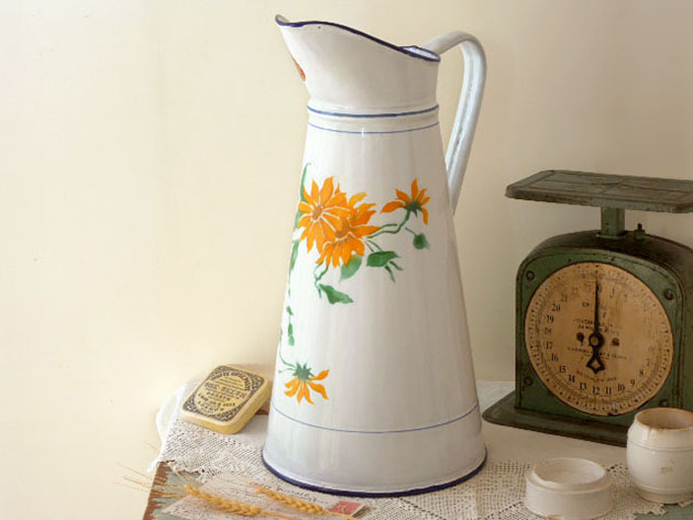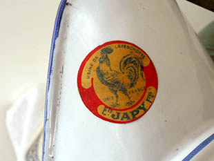 とんどデッドストックのエティケット(ラベル)付きホウロウ製のオランジュダリアブランシュキュイズィーヌ
