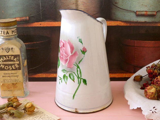 ヌ(キッチン)用のピシェ(ピッチャー)で、本体にはロゼのローズがデザインされていてエレガントでオシャレ
