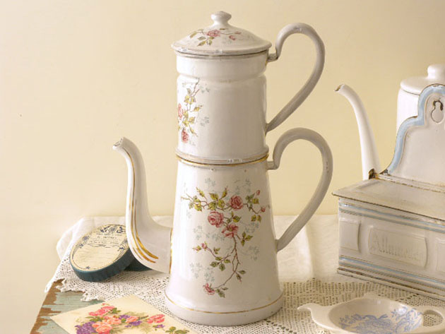 ありますが、こちらはそれ以上にロゼローズのイラストが美しいカフェティエールですね。フランスでもロ
