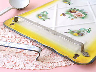 すが、これは全てホウロウ加工前の製造時のものです。ローズとパンセのイラスト部分の発色が良くきれい