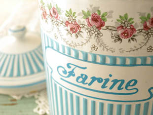 こちらはレアなB. B.社のフタの付いたFarine(ファリーヌ/小麦粉)を入れるためのポ(ポット)で、爽やかなブ