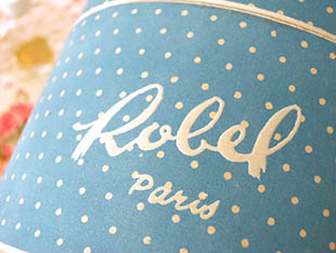 のポワ模様の上にブランシュのエンボスでデザインされたRobel Paris(ロベールパリ)のロゴがエレガントでオ