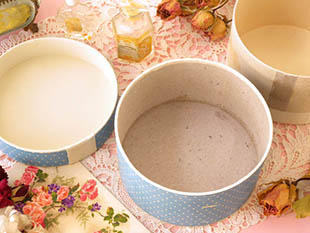 タルキプードルが入っていた厚紙で製造されたブルークレール(ペールブルー)にブランシュ(ホワイト)のポワ