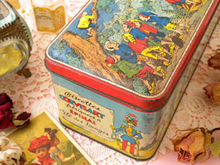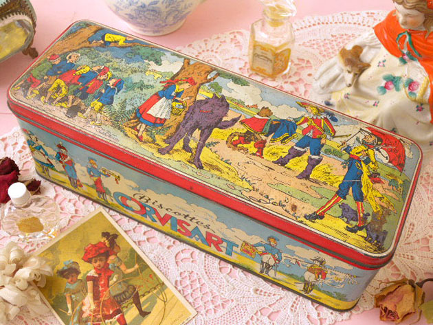 Biscottes(ビスコット)が入っていたエタン(ティン)製のプティシャペロンルージュビスコットボワットです。